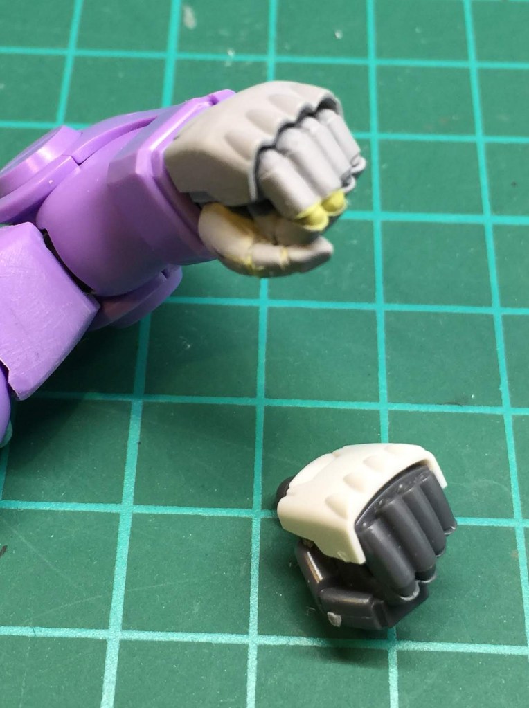 ③ 手はザクと同サイズに。拳は削り込み&指ディティール追加。