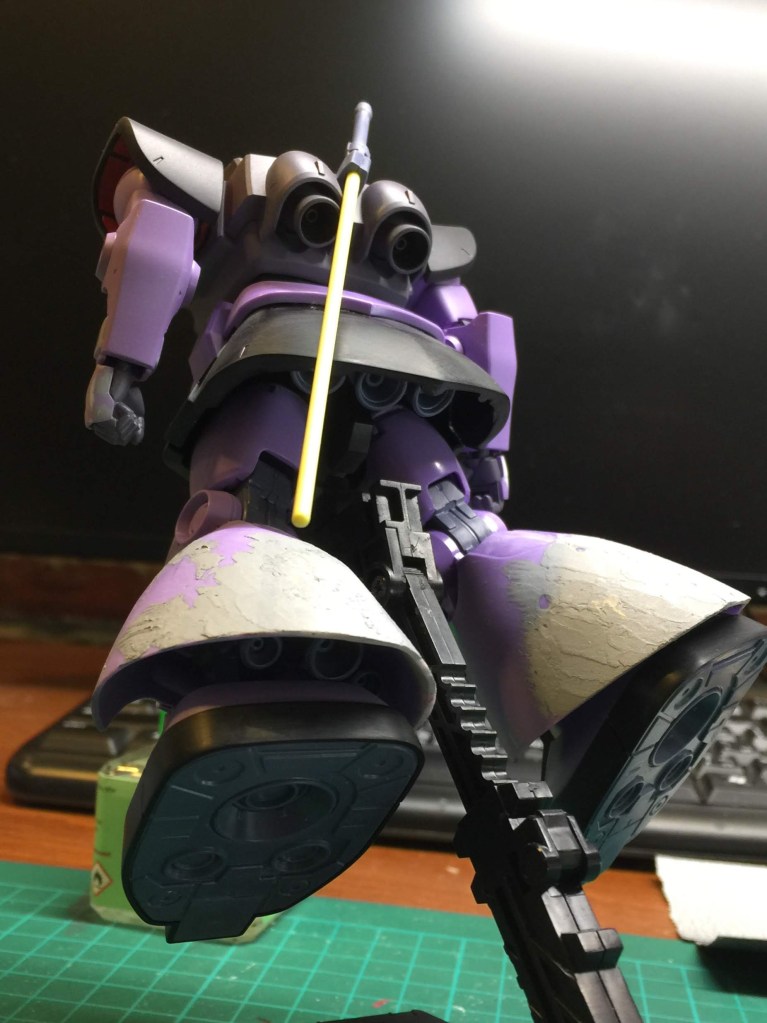 現在ザクシリーズをテーマに制作活動をしておりますが、前作ジョニー・ライデン少佐機06Rへの引き立て役として、HGUCリックドムを制作してみました。ベースキットは2002年製とはいえ、パーツ構成も合理的で、少しの改修で大きく応えてくれるキットだと感じました。直近二作が共に2年というあまりに制作時間を度外視していたので、ポイント改善に徹し約二か月弱で完成させました。