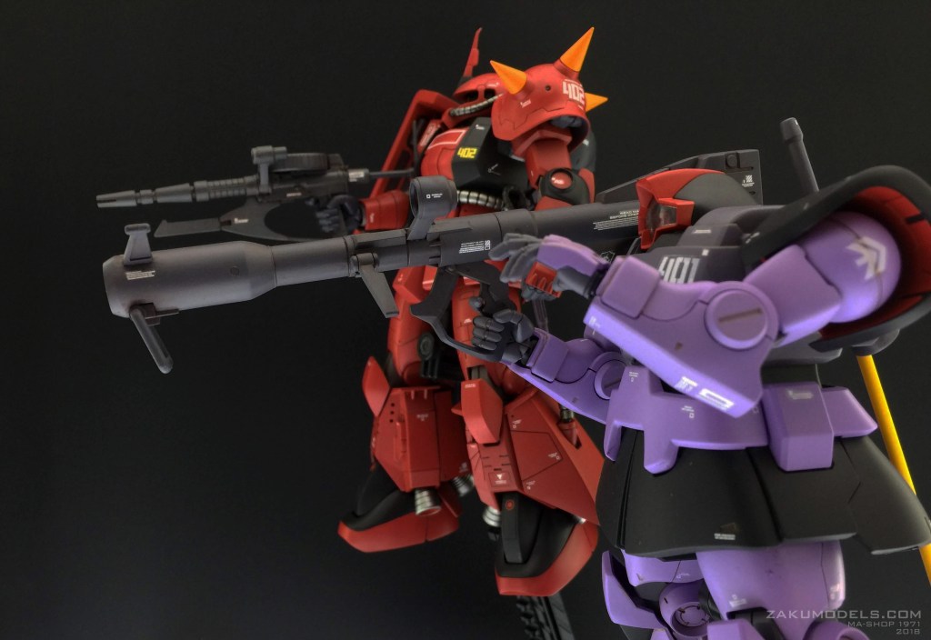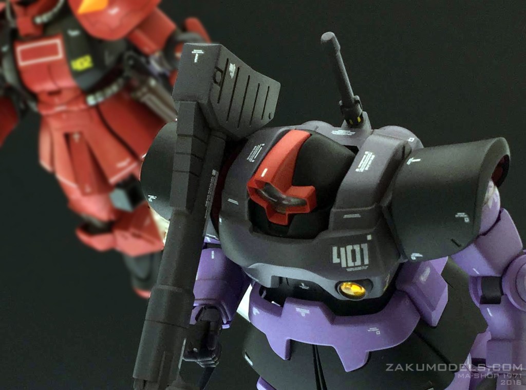 前作ジョニザクはそれなりに力作ではありましたが、メジャーな機体であるが故のインパクトの薄さ(自分の中で)という印象もありました。そこで、引き立て役として「ドムを従えるジョニザク」という絵にしてみることで萌え要素の増加を試みたのが今作です。