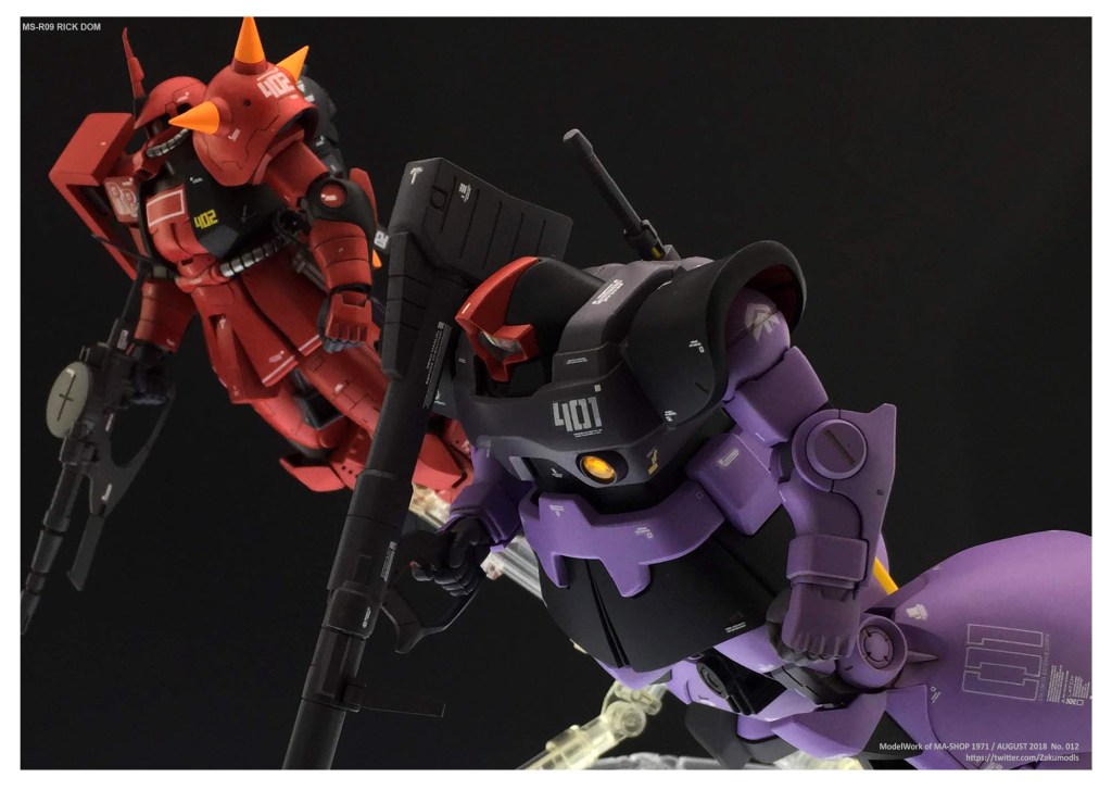 ドムは元々の意匠がザクに比べてカオスの幅が小さく、比較的安定した題材だと考えております。実際、MG、HGUC以降、意匠はほぼ確定している印象です。