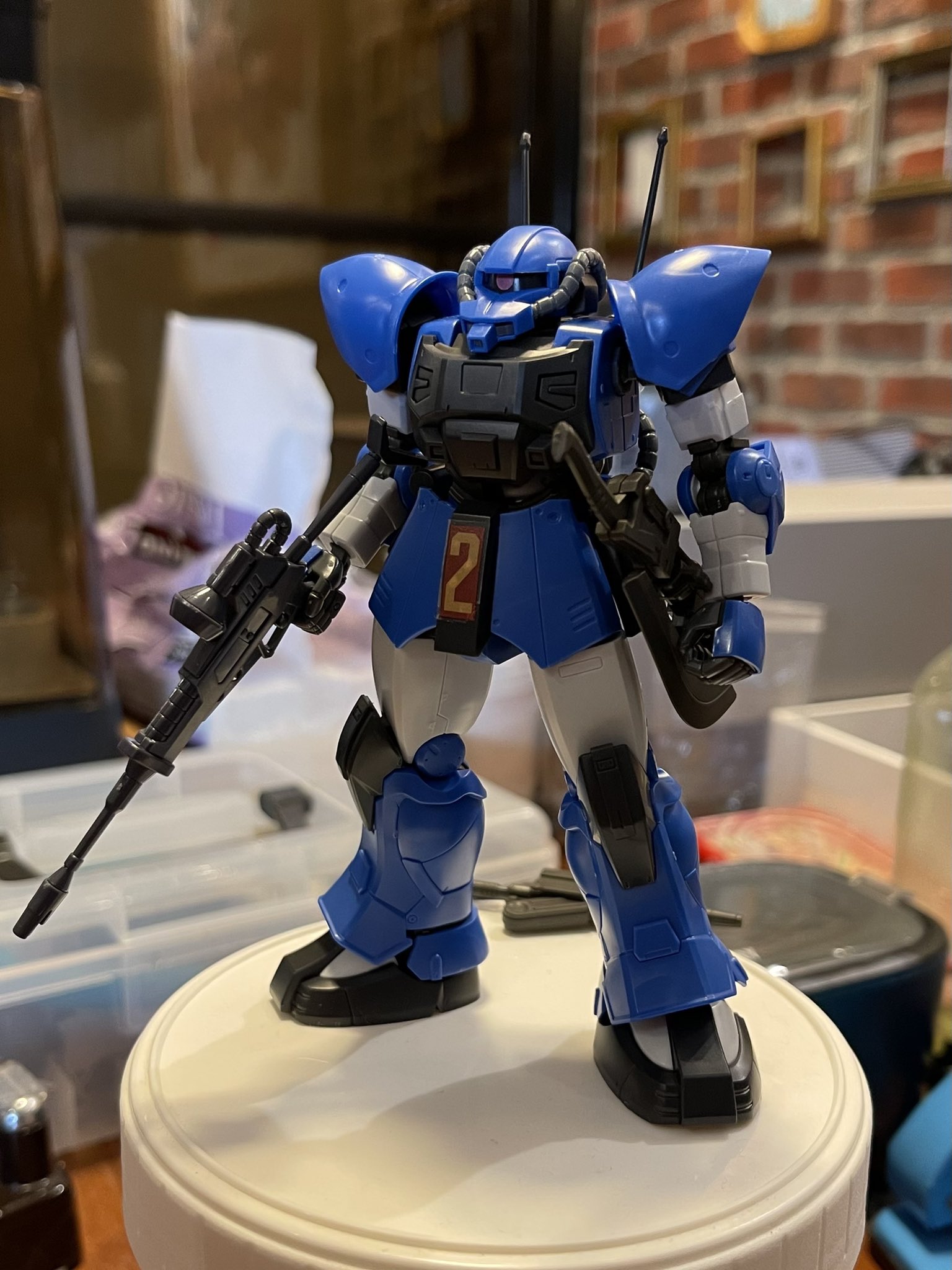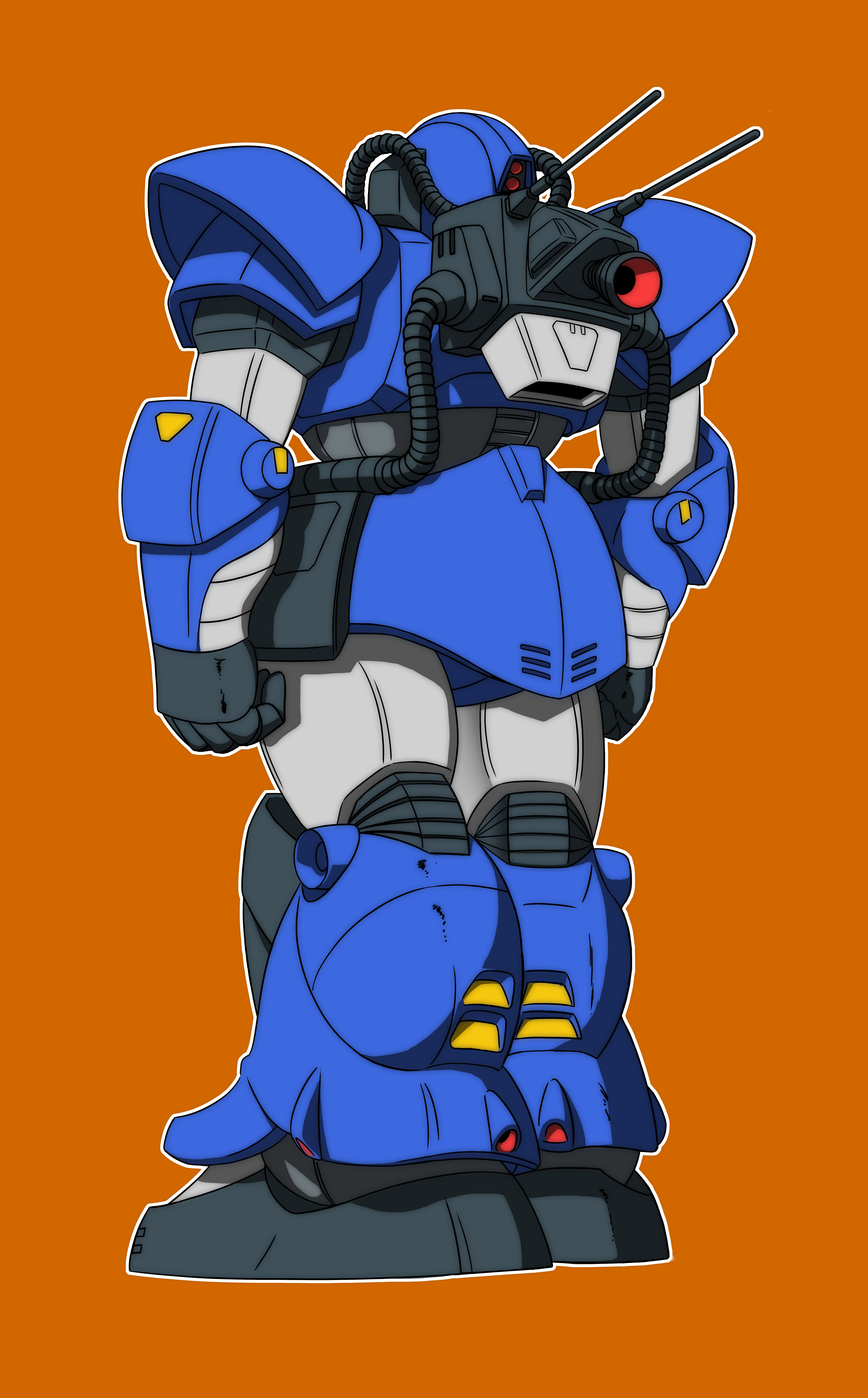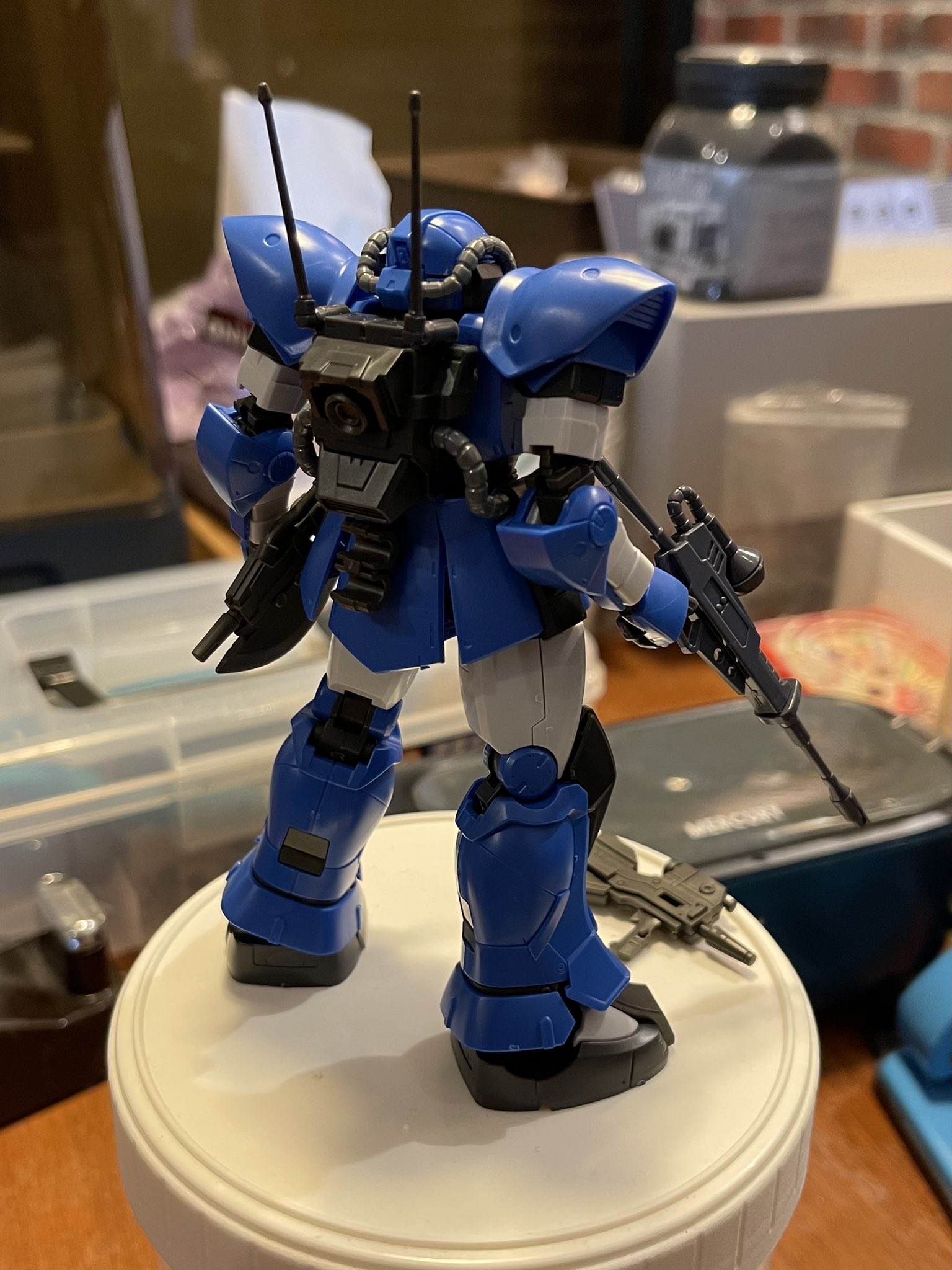 元設定の肩アーマーには無いジオノMSD版で追加された円ディティールをスパイク取り付け部と解釈したもの(ややこしい)。思いのほかジオン味が強化されなんというか「スパイクがないやつは牙を抜かれた連邦版~?」みたいな世界線が生じかけました。イフリートに似てるなと思った事もあり二ムバス機としましたが公式のアクト・ザクパイロットであるマレット・サンギーヌ機やキシリア隊等いろいろイメージが拡張出来そうで楽しいです。
