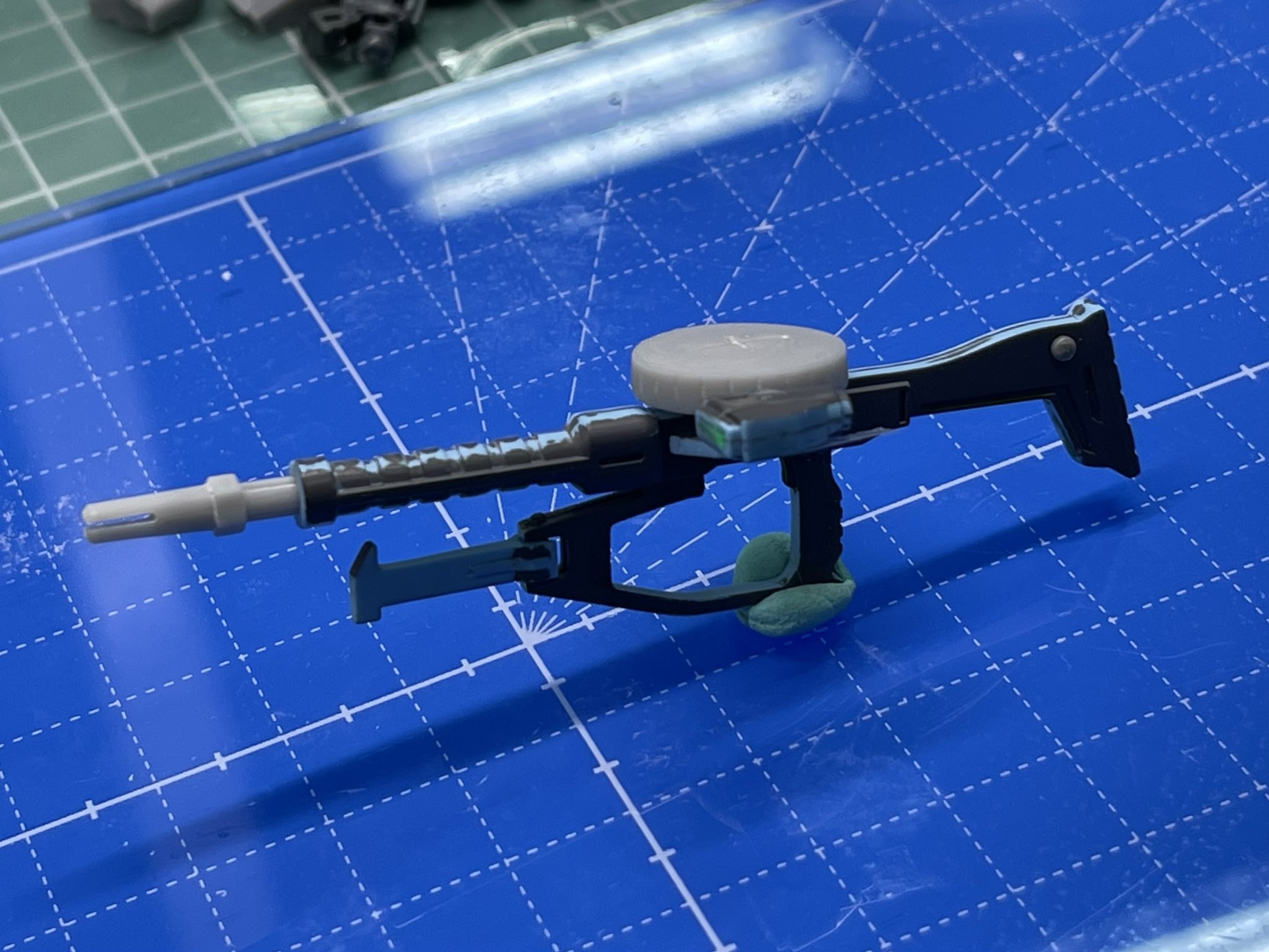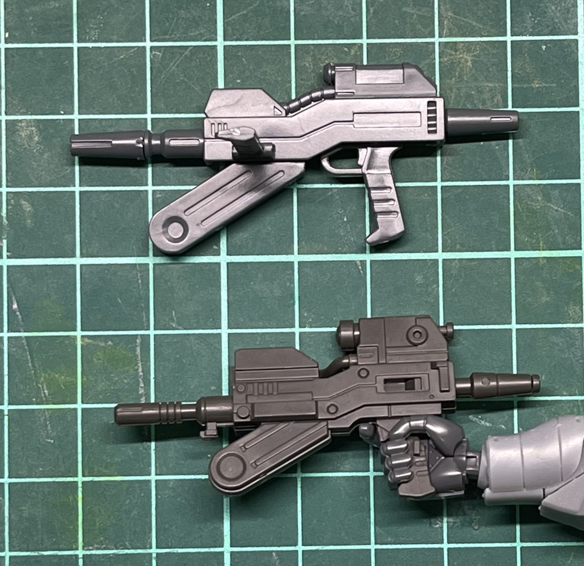 ビームライフルについてはジオン機はHGアクト・ザク付属のモノを、ティターンズ機はHGマラサイのを使用しました。ザクマシンガンはHGハイザックのものにマイノーマルザク用に作ったザクマシンガンのマガジンと銃口を合わせてます。