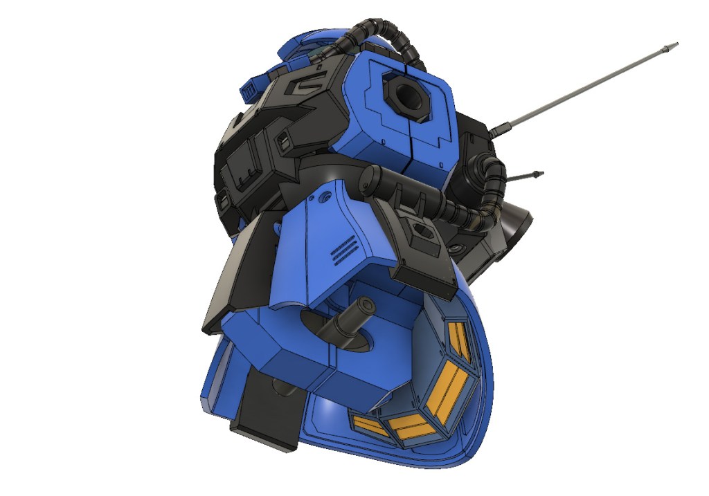 先ず元設定とその後アップデートされたデザインを見比べ、吟味し自分ならこうしたいという方向にまとめました。公式に於いてRX-78-2並みのスペックを持つザクという部分も考えながらディティールを吟味しました。