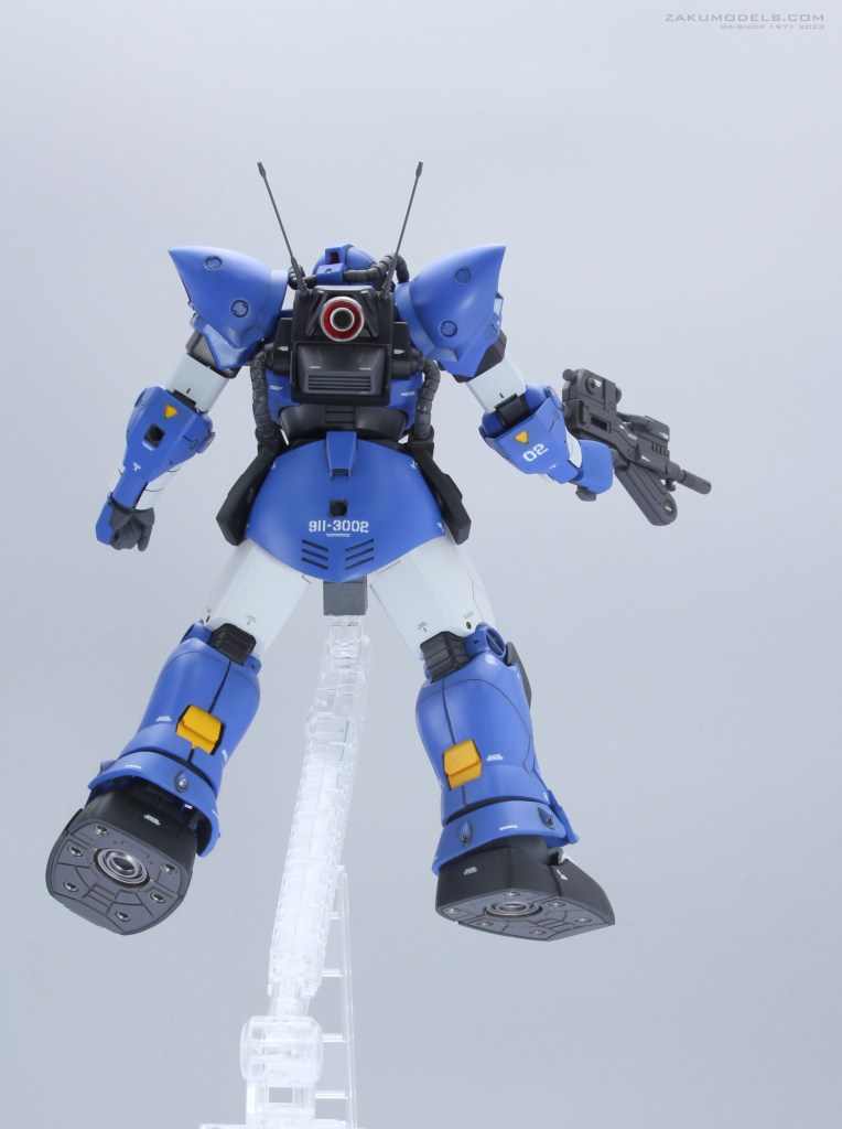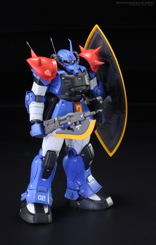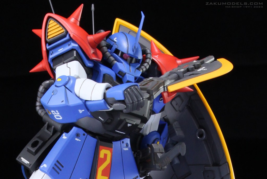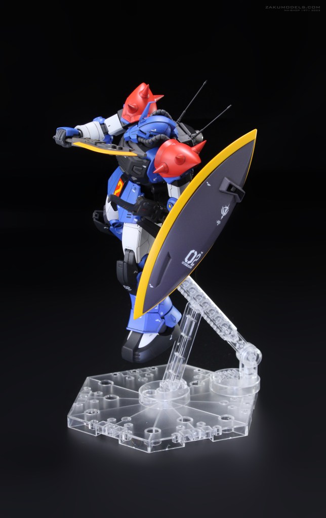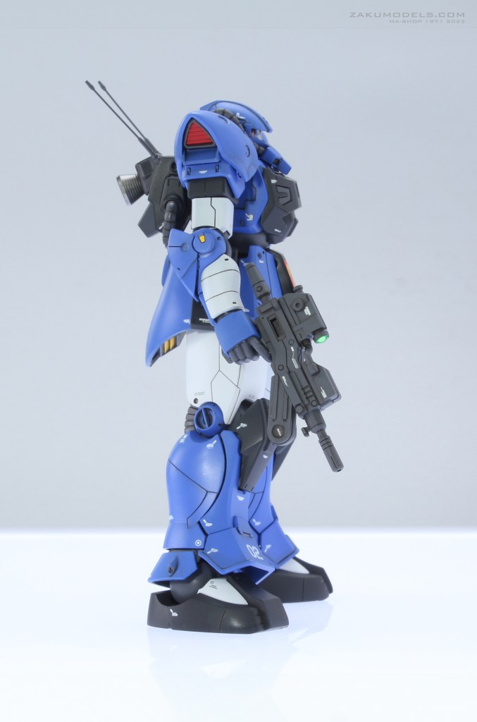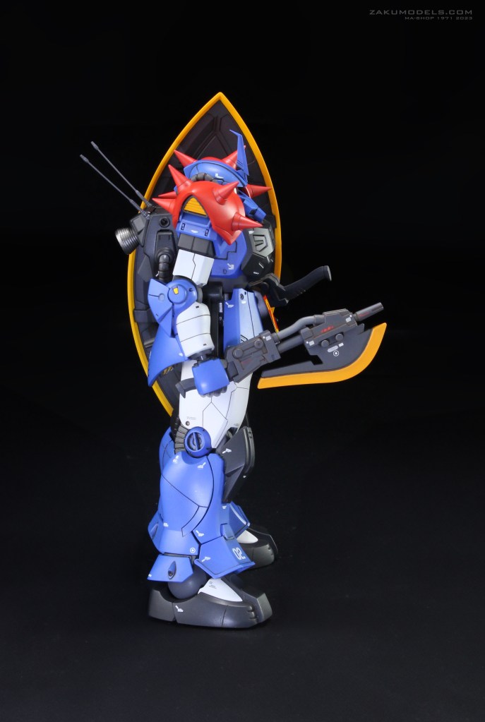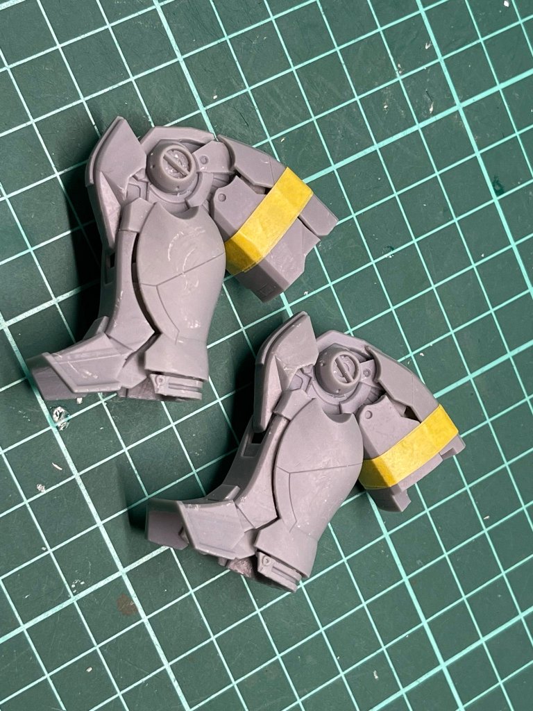 マイノーマルザクの下腕形状を踏襲。肩アーマー形状及びディティールをHGよりアクセント強めにアレンジ。肩口スラスターはディティールアップ及びスラスター下にベーンを追加。