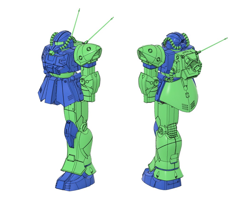 ジオノMSD版でノーマルザクと共通化されたリアスカート及び複雑な面構成になったバックパックを元設定の形状に差し戻し。